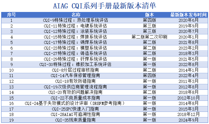 【行(xíng)業(yè)新聞】一(yī)張圖帶你(nǐ)了(le)解AIAG¥ CQI系列手冊最新版本
